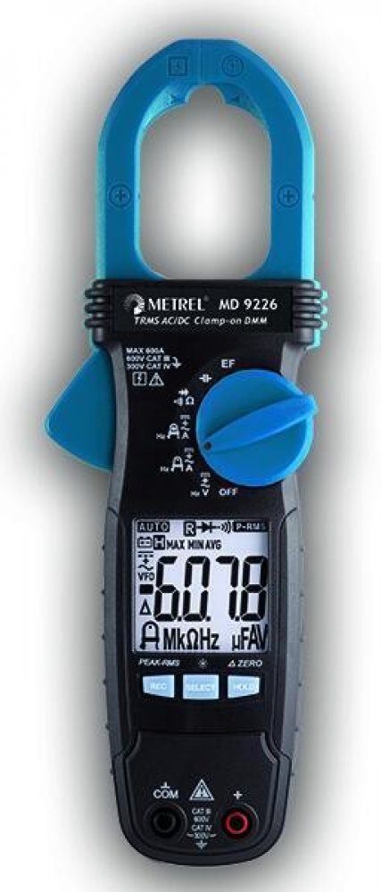 MD 9226 je profesionální TRMS AC/DC klešťový multimer pro měření kapacity a kmitočtu. Je vybaven VFD, což umožňuje měřit skutečné hodnoty v souladu s frekvencí. MD 9226 má celou řadu dalších funkcí, například uchování dat a maximálních hodnot, automatické vypnutí, automatickou volbu rozsahu a možnost relativního vynulování. Využívá nejmodernější měřící techniku a je dodáván v pevném pouzdru v průmyslové kvalitě. TRMS AC/DC napětí až 600 V; TRMS AC/DC měření proudu až do 600 A; měření odporu; zkouška akustické průchodnosti; test diod; měření frekvence; měření kapacity; LCD displej s podsvícením, 3-5/6místný, 6000 bodů; funkce uchování hodnot; Klešťový multimetr MD 9226·2 měřicí kabely se zkoušecím hrotem·2 baterie·1 pouzdro·.