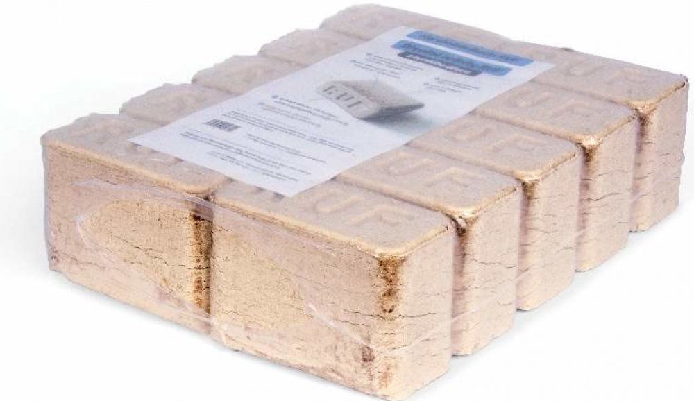 100% bukové brikety z jemných pilin bez příměsí, lisované do hranolů RUF.
