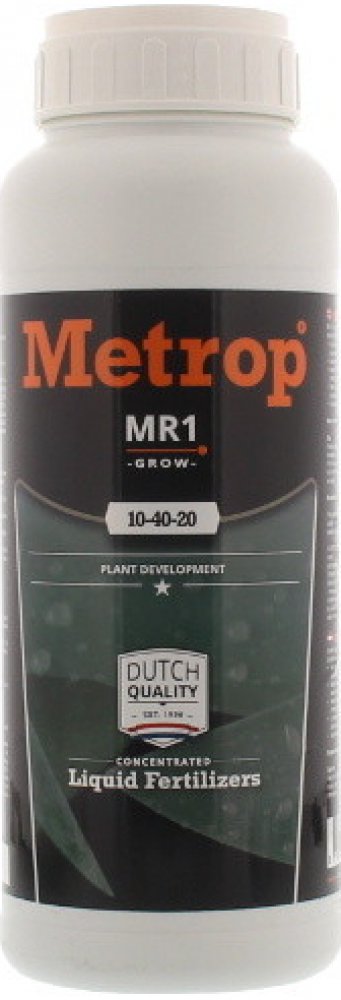 Koncentrované hnojivo Metrop MR1 je určeno hlavně pro růstovou a počáteční květovou fázi. Obsahuje všechny potřebné makro a mikro složky, včetně vysokého obsahu dusíku, fosforu a draslíku. Hnojivo je vhodné pro pěstování rostlin v jakémkoliv pěstebním médiu.