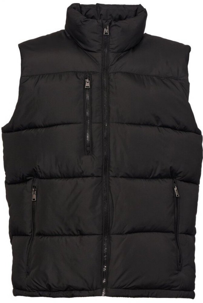 Pánská vesta s výplní z volných vláken (300g/m²), zapínání na plastový zip s kovovým jezdcem přizpůsobeným vrtulí. Vnitřní kapsa na zip. Dvě boční kapsy a jedna kapsa na hrudi na zip. Lemování sladěné barvy. Stažitelná spodní část na stahovací šňůrku.
