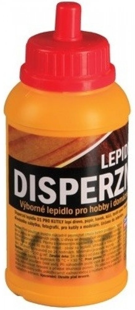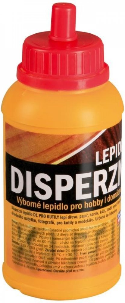 Disperzní lepidlo D1 pro kutily. Odolávající občasné zvýšené vlhkosti. Určeno k použití do interiéru. Pro domácí lepení dřeva a papíru.