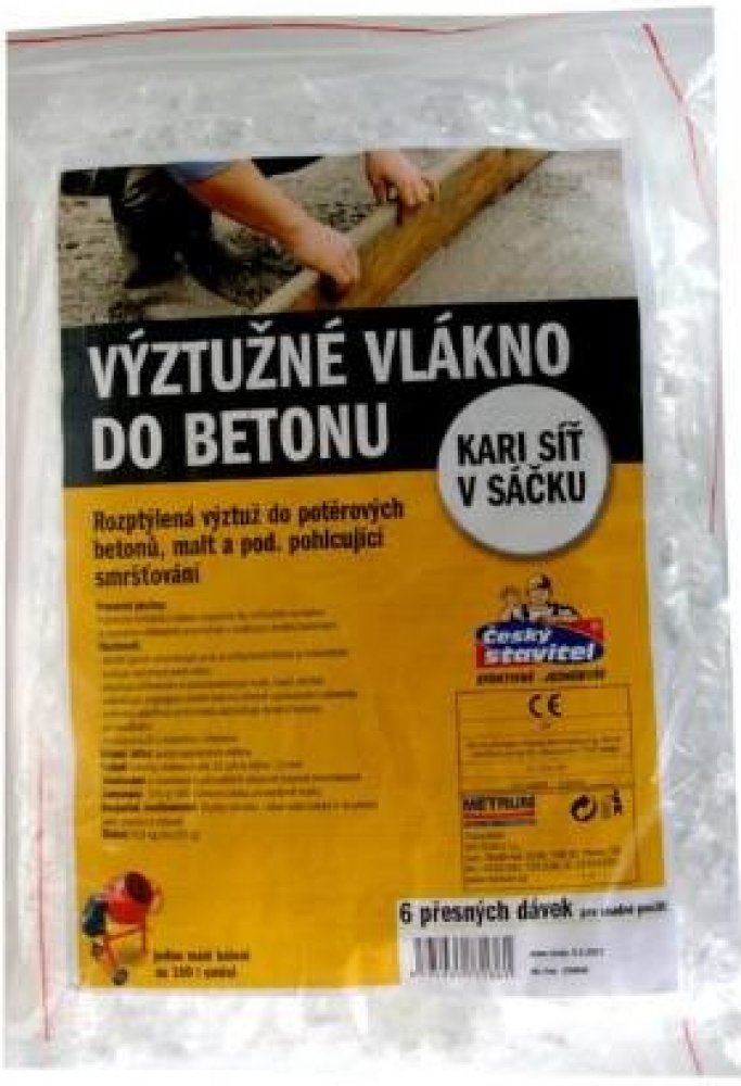 PP vlákna ENPRO 12 mm do betonu a malty, omezují trhliny a zvyšují pevnost směsi. Výztužné polypropylenové vlákno ENPRO 12 mm je určeno pro rozptýlenou výztuž betonů, potěrů, malt, štuků a tmelicích směsí. Funguje jako praktická alternativa kari sítě v sáčku. Vlákna zabraňují segregaci směsi, omezují vyplavování cementu a oddělování složek. Díky své struktuře výrazně snižují kapilaritu, a tím i propustnost vlhkosti a solí. Výrazně zvyšují odolnost materiálu vůči mrazu, vzniku mikrotrhlin a otěru. Vhodné pro všechny betonářské práce i opravy.