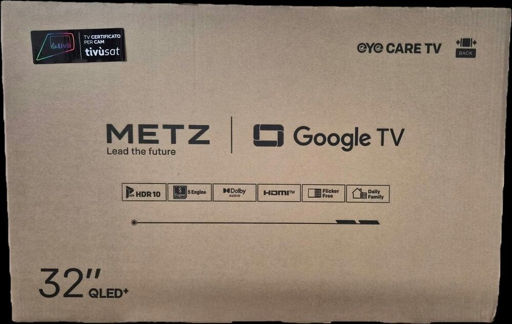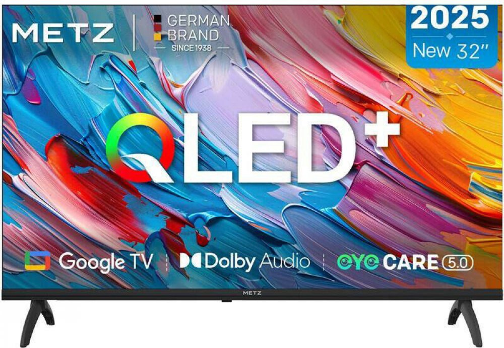 Metz 81.28 cm LED 32 palců Google TV 2025 Černá Stojan, napájecí kabel, manuál, baterie, záruční list, dálkový ovladač 1366 x 768 60 1.0-2.0m optimální Základní HDR Nejnovější 2024/2025 platforma HD streamování 2 2 2 porty Snadná montáž (standardní VESA) 3.3 kg 200 x 100 Vyžaduje 80cm+ nábytek 71.5×42.6×6.8 E 35.0 kWh 26.0 kWh E 2277252 Dobrý vestavěný zvuk