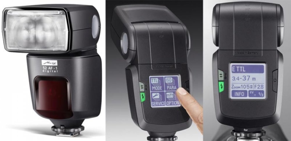 Výkonný systémový blesk Metz MB 52 AF-1 Digital pro fotoaparáty Canon, s novým dotykovým displejem s podsvícením, který zobrazuje přehledně potřebné informace a usnadní nastavení. Výkonný systémový blesk Metz MB 52 AF-1 Digital s novým dotykovým displejem s podsvícením, který zobrazuje přehledně potřebné informace a usnadní nastavení. Velmi příjemnou fukcní je rotující displej při naklonění o 90 s...