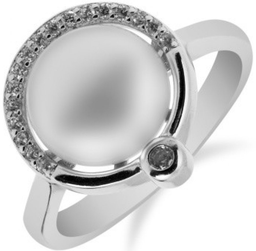 Meucci Stylový stříbrný prsten s perlou a zirkony SP35R