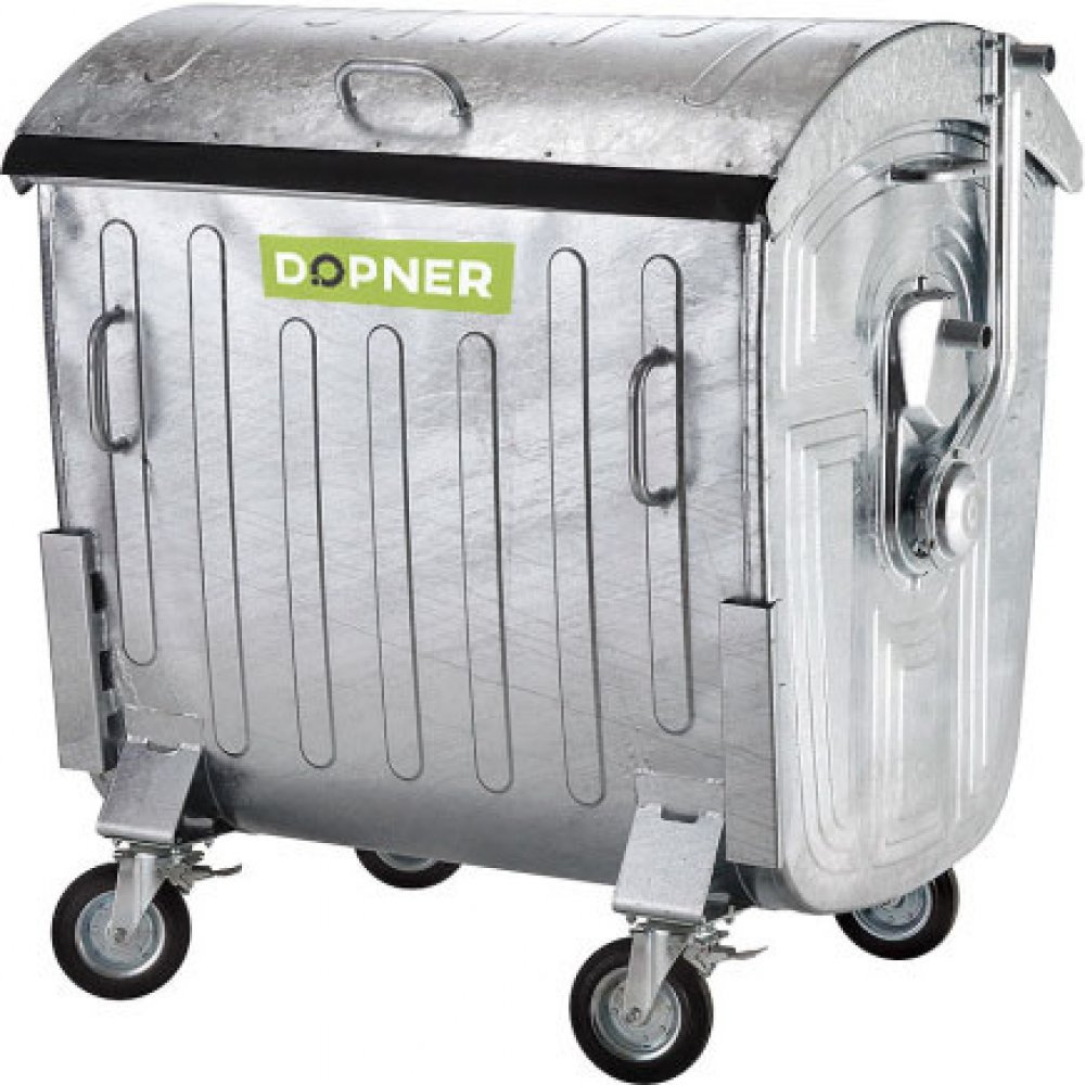 Kovový žárově zinkovaný kontejner s kulatým víkem o objemu 1100 l. Vyrobeno z ocelového plechu - plášť 1 mm Povrchová úprava provedena žárovým zinkováním. Vybaveno otočnými kolečky s průměrem 200 mm – 2x s brzdou. Kontejnery jsou vhodné pro sběr domovních i průmyslových odpadů.