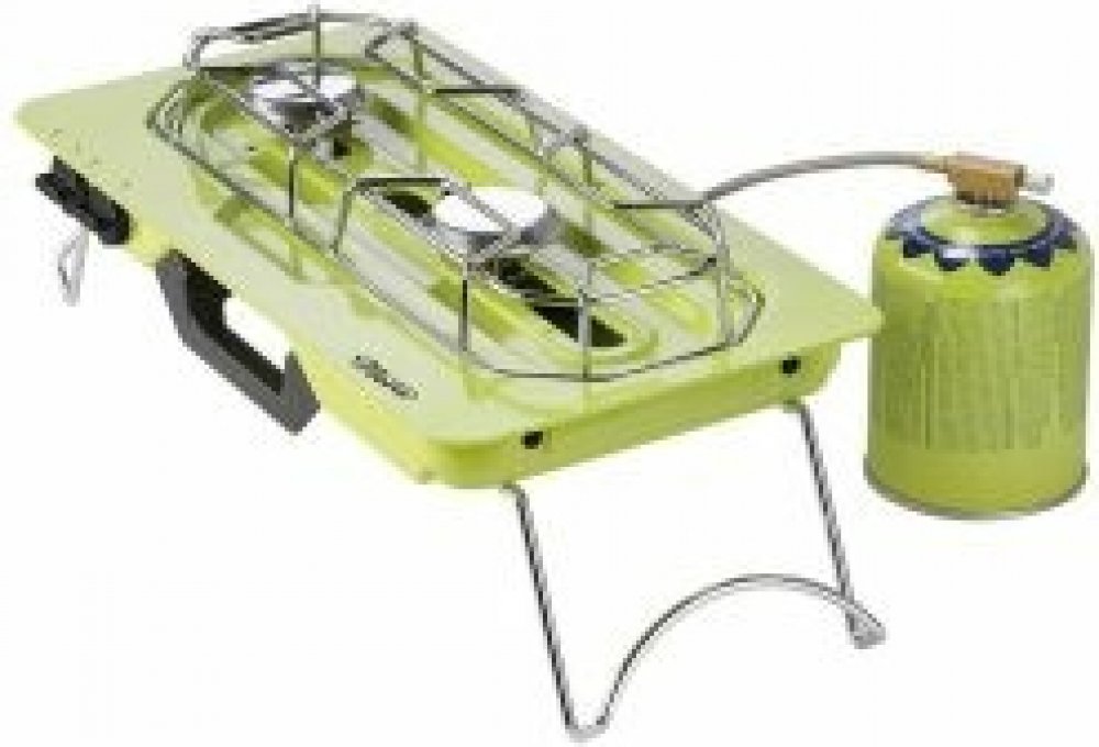 Kartušový stolní dvouvařič s variabilně posuvným hořákem.