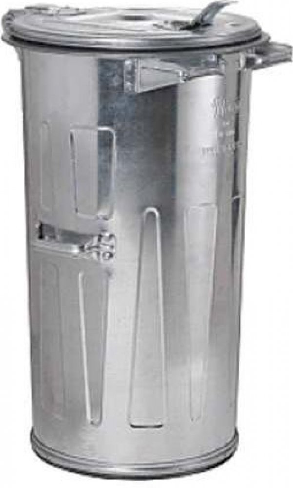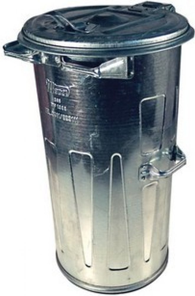 - klasická pevná kulatá popelnice vyrobená z pozinkovaného plechu objemu 110 litrů, rozměry 87 x 46 x 46 cm, hmotnost 13.5 kg