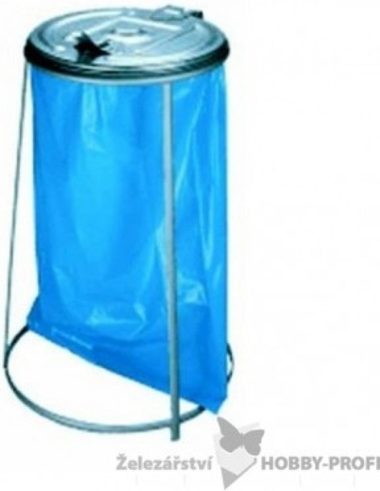 Stojan na odpadkové pytle 120l, kovová konstrukce a poklop, povrchová úprava: žárově zinkované, rozměry: 575x950 mm, lze stohovat. Dodáváno bez pytlů na odpad. Vyrobeno v ČR.