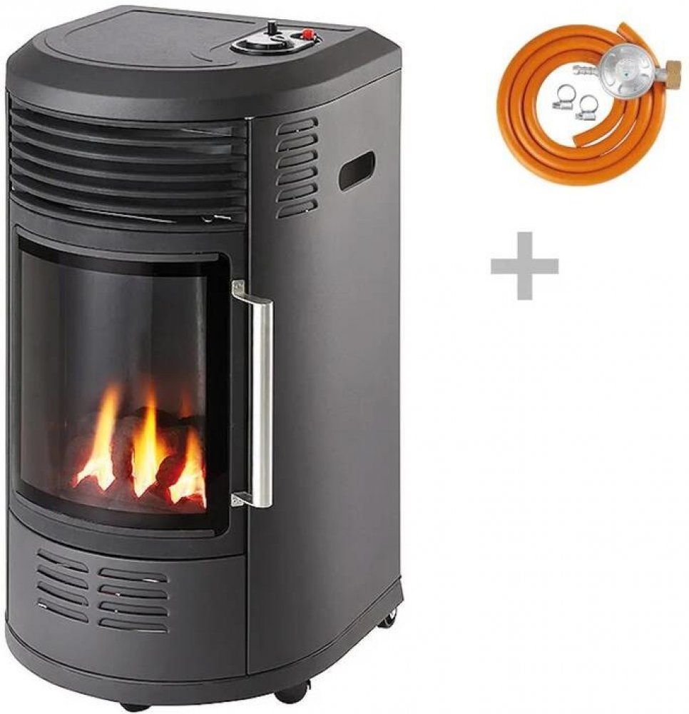 Součástí kamen je plynová hadice vč. regulátoru.