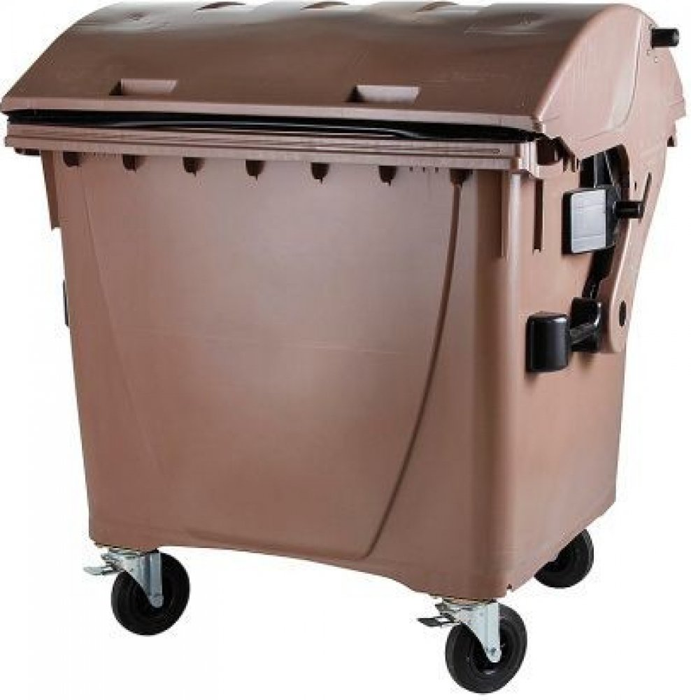 Plastový kontejner o objemu 1100 l s kulatým víkem. Vybaveno 4x kolečkem - 2x bržděné s průměrem 200 mm. V souladu s EN 840. Odolné vůči UV záření, chemickým a biologickým vlivům nebo mrazu. Hladké plochy zabraňují ulpívání odpadu. Výrobní materiál neobsahuje kadmium a může být znovu kranulován.