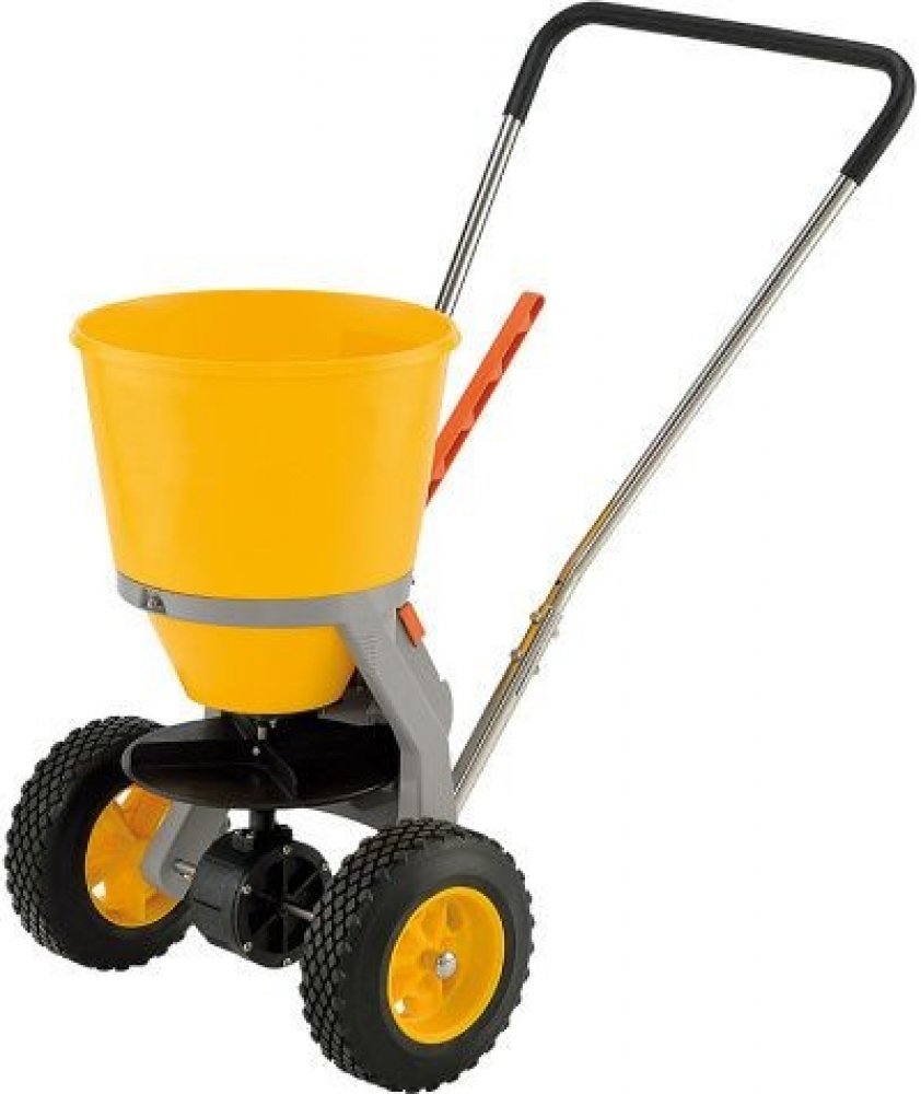 Posypový vozík pro posypový materiál na zimní údržbu pozemních komunikací o objemu 20 l.Nádoba/zásobník vyrobena z plastu (PE) a náprava z nerezové oceli.Vhodné pro menší plochy.Zásobník na 20 l materiálu.Plná plastová kola.Plynulé rozmetání s volbou intenzity posypu – až 6 kroků.Šíře posypu – 1 – 4 m (dle rychlosti pojezdu).