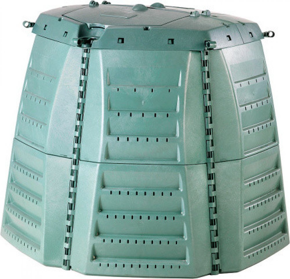 Plastový kompostér Thermo Star o objemu 1000 l Vyrobeno ze 100 % recyklovaného polypropylenu. Výborná tepelná izolace, odolnost proti povětrnostním vlivům. Odolnost proti UV záření. Jednoduchá stavebnicová konstrukce (snadná a rychlá montáž). Dvě víka pro plnění umístěná v horní časti. Dostatečný počet odvětrávacích otvorů. Vyjímání kompostu umožněno po vytažení zajišťovací tyče z více stran.