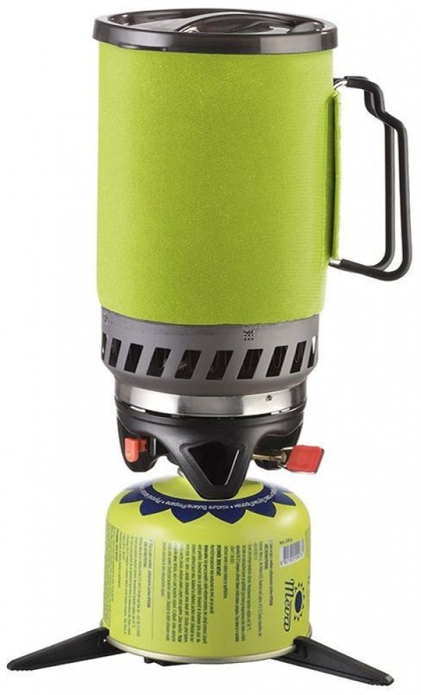 Součásti vařiče je nádoba o objemu 0,8 l, která má ve spodní časti tepelný výměník, který urychlí rychlost ohřevu. Vařič tak díky tomu dokáže ohřát stejné množství vody za stejný čas, jako ostatní outdoorové vařiče, jen se t...