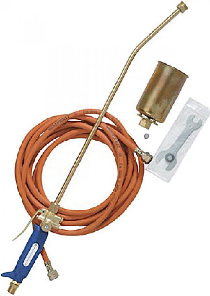 Stavební hořáky jsou určeny pro izolatérské a asfaltérské práce ve stavebnictví a pro ohřevy většího rozsahu. Hořákový komplet na propan-butan s prodlužovací trubkou a 5 m hadice. Kvalitní stavební plynový hořák s rychloregulací na rukojeti. Umožňuje nastavení udržovacího plamene a spuštění plného výkonu pomocí páky. Pro připojení 10 nebo 33kg propanbutanové lahve je potřeba regulátor NP 01011 nebo U4498, který není součástí balení. - výkon 120 kW, - hmotnost 1,8 kg, - spotřeba 9500 g/hod, - rozměry 580 x 120 x 80 mm, - bez piezozapalování, - předpokládaná výdrž ( 10 kg ) - 1 hodina.