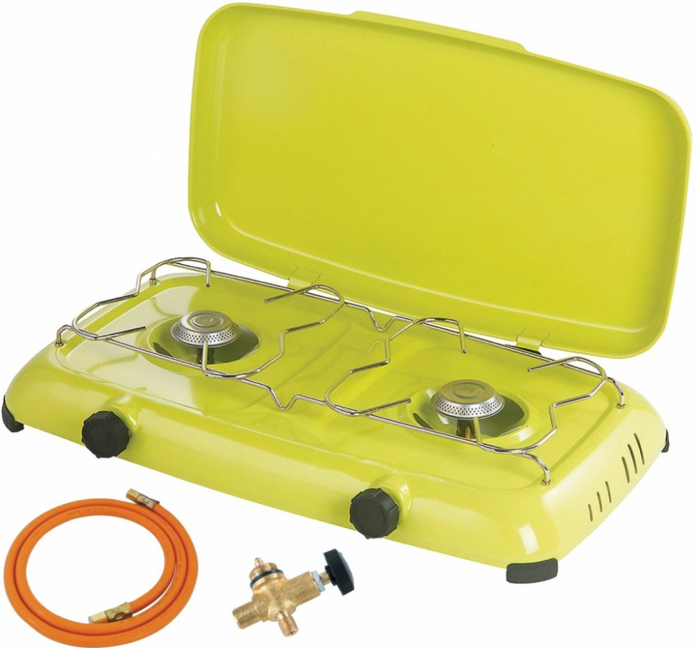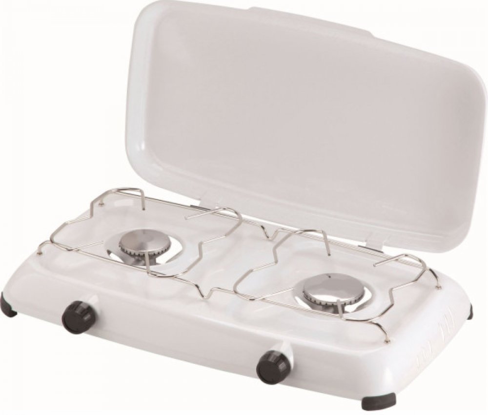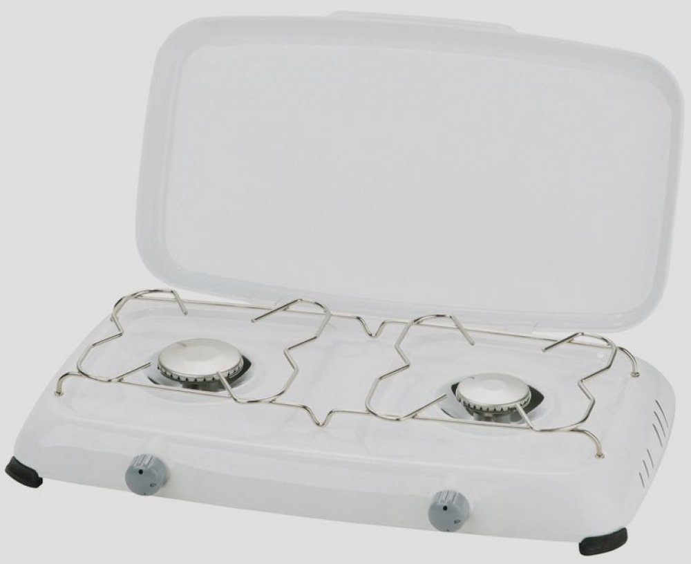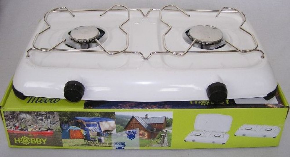Připojení k 2 kg, 5kg, 10 kg nebo 33 kg propan butanové láhvi. Vařič na Propan-butan - 2 plotýnky, pro připojení k PB lahvi