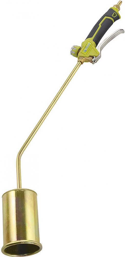 Izolatérský hořák o výkonu 54 kW s rukojetí vybavenou rychlo-regulací.