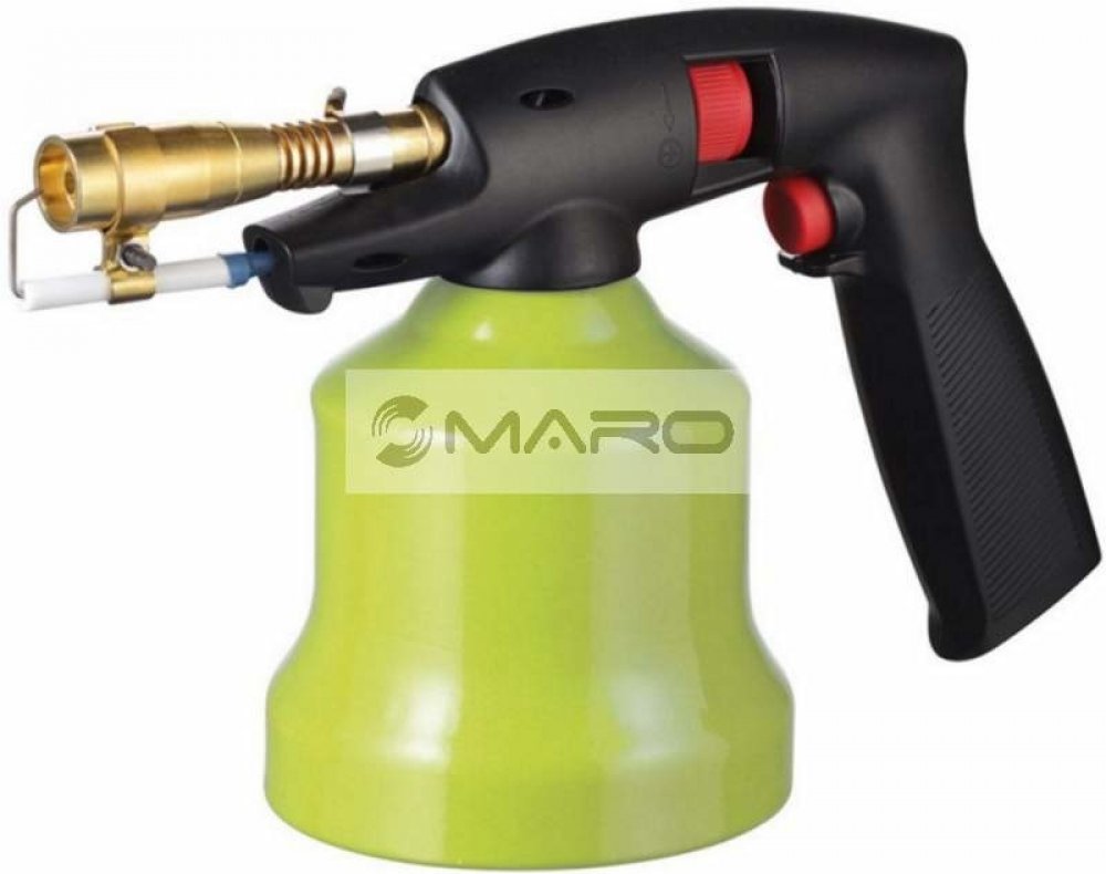 Meva Hořák Typhoon Piezo 1,3 kW • pro opalování nátěrů a barev, nahřívání materiálu za účelem spojování (např. plastových trubek) • dále lze použít pro pájení natvrdo, tepelné opracování, zapalování grilů, rozmrazování • regulace plamene, piezo zapalování stisknutím knoflíku, předehřev plynu - výhodou předehřevu je možnost práce v jakékoliv pozici bez tzv. "vyšlehávání plamenů" • maximální teplota plamene: 1300 °C • použití jednorázových kartuší 190g UKP02001 • materiál: ocel • barva: zelená • spotřeba plynu: 100 g/h • výkon: 1,3 kW