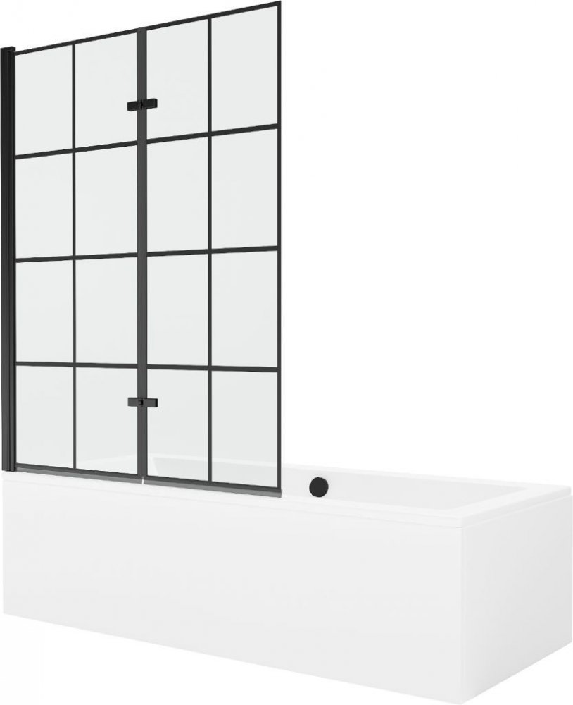 Specifikace produktu: Rozměr vany: 170 x 80 cm Materiál: Sanitární akryl bílá barva Typ: Obdélníkový / Univerzální Objem: 170 l Sada obsahuje nastavitelné nožičky, vana nemá sifon Odolnost proti matování a UV záření Pouzdro: 170 cm (přední panel), 80 cm (boční panel) Rozměr obrazovky: 120 x 150 cm Typ: 2-list Instalace: Univerzální Typ: Pohyblivý Typ skla: Tvrzené Barva skla: Černý vzor Tloušťka skla: 6 mm Povrchová úprava: černá Povlak pro snadné čištění Vyrovnání nerovností stěny Sada těsnění pro odvod vody