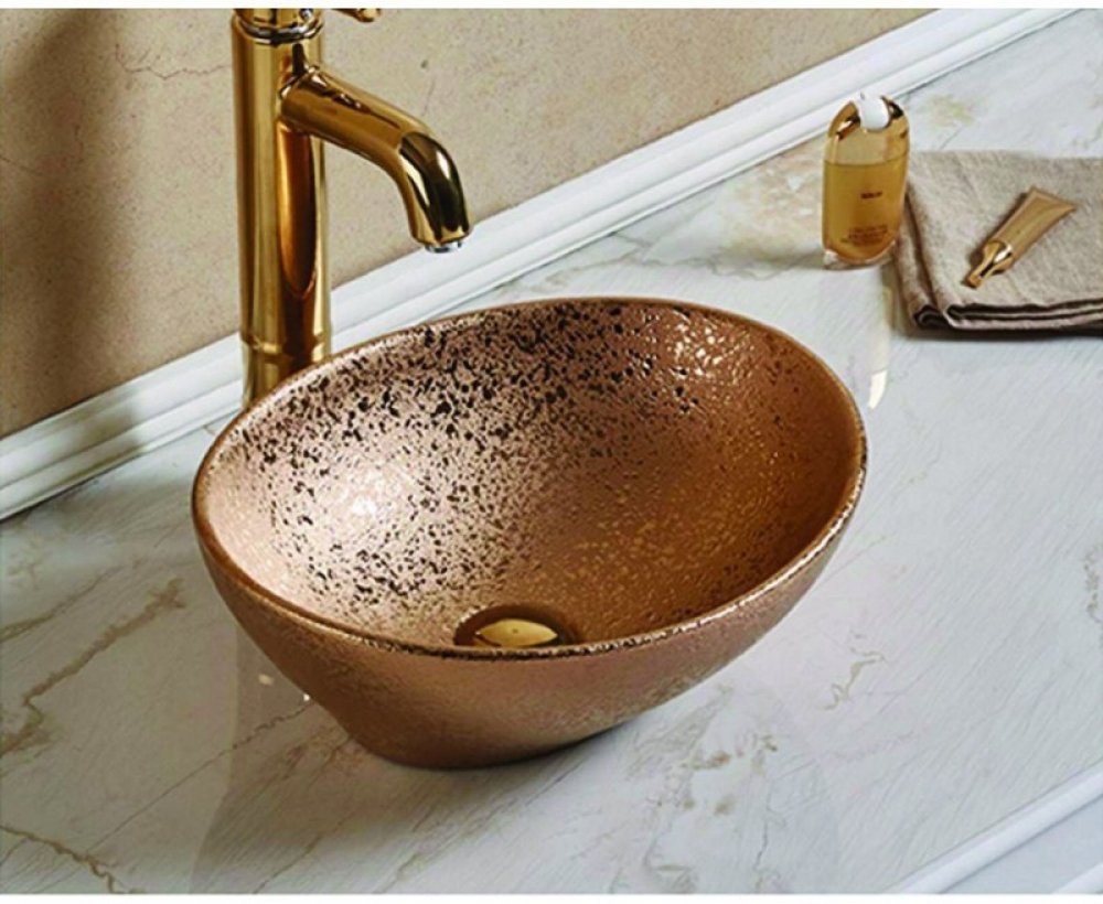Originální umyvadlo na desku Elza od společnosti Mexen v měděné barvě je návrh, který se skvěle hodí do koupelny klasického stylu. Dřez má zajímavý vzhled a strukturu. Je vyroben z odolného materiálu, který se používá na výrobu sanitární techniky díky které bude sloužit mnoho let. Měděná barva se krásně spojí například se zlatým kohoutkem. Umyvadlo s rozměry 40 x 34 x 14,5 cm má oválný tvar. Vysoké stěny mísy poskytují pohodlí.
