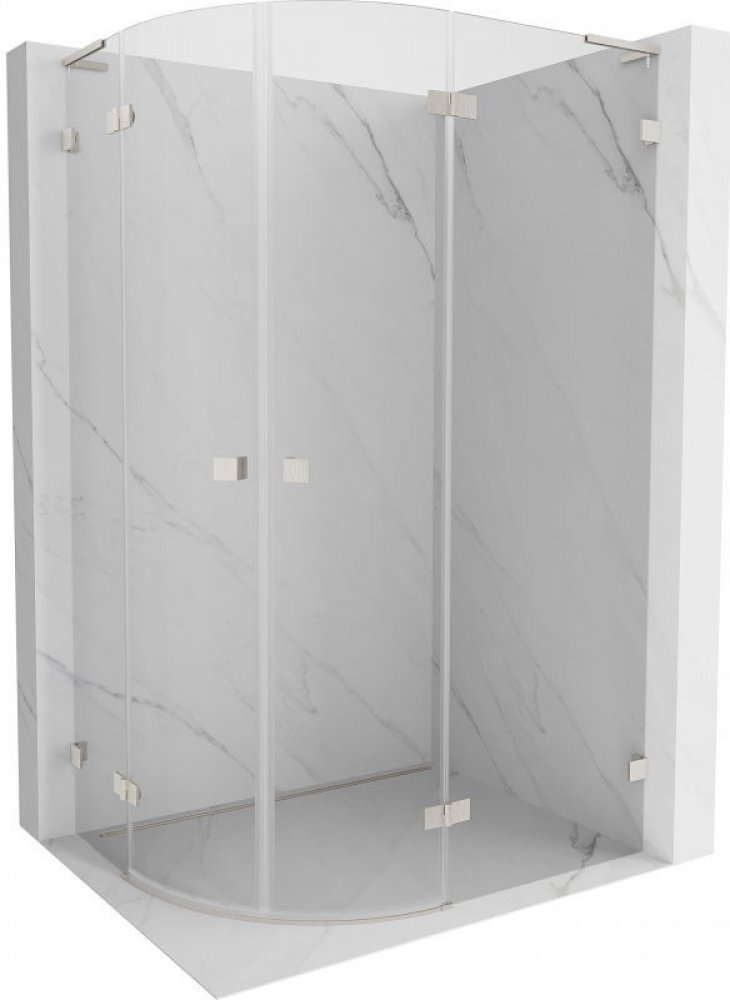 Specifikace produktu: Rozměr: 100x90 cm (pravé dveře 100 cm, levé dveře 90 cm) Výška: 200 cm Poloměr zaoblení R55 Strana montáže: Pravá Vchod: Křídlové dveře Barva skla: Průhledná Povrchová úprava: Kartáčovaný nikl Profil: Hliník L-úhlový stabilizátor: nerezová ocel Typ skla: Tvrzené Tloušťka skla: 8 mm Snadno čistitelný povlak Možnost nastavení šířky Dva montážní systémy: - S profilem, který umož...