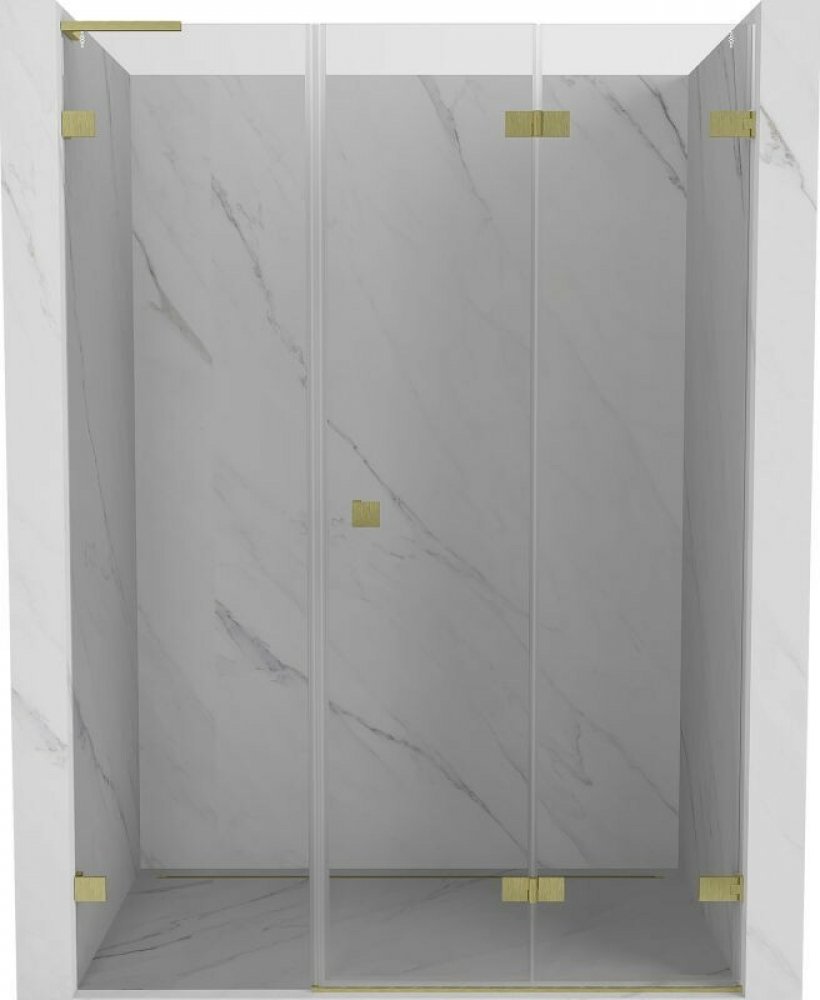Specifikace produktu: Rozměr: 150x200 cm Strana montáže: Pravá Vstup: Skládací Barva skla: Průhledná Povrchová úprava: Kartáčované zlato Profil: Hliník L-úhlový stabilizátor: nerezová ocel Typ skla: Tvrzené Tloušťka skla: dveře 6 mm, stěna 8 mm Snadno čistitelný povlak Možnost nastavení šířky Dva montážní systémy: - S profilem, který umožňuje vyrovnání nerovností stěn - Bez profilu pro dokonale ro...