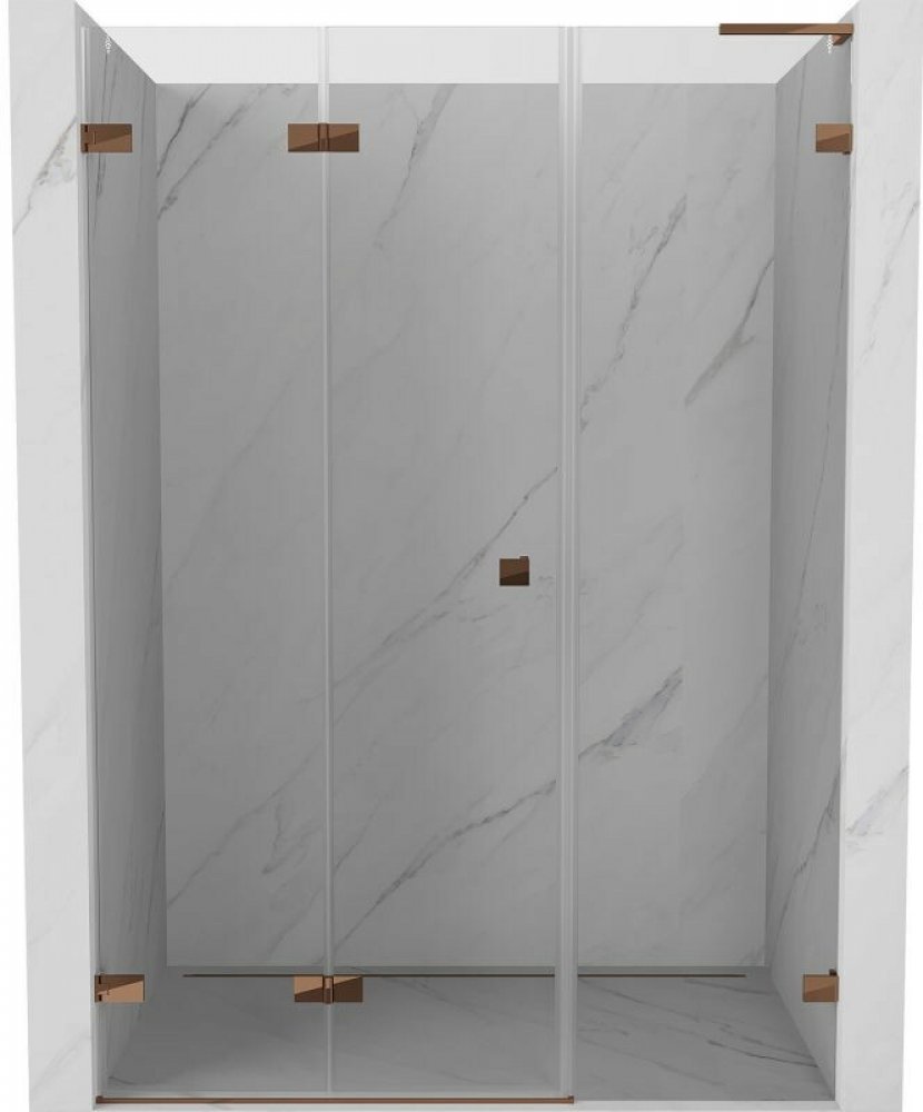 Specifikace produktu: Rozměr: 150x200 cm Strana montáže: Levá Vstup: Skládací Barva skla: Průhledná Povrchová úprava: Růžové zlato Profil: Hliník L-úhlový stabilizátor: nerezová ocel Typ skla: Tvrzené Tloušťka skla: dveře 6 mm, stěna 8 mm Snadno čistitelný povlak Možnost nastavení šířky Dva montážní systémy: - S profilem, který umožňuje vyrovnání nerovností stěn - Bez profilu pro dokonale rovné st...