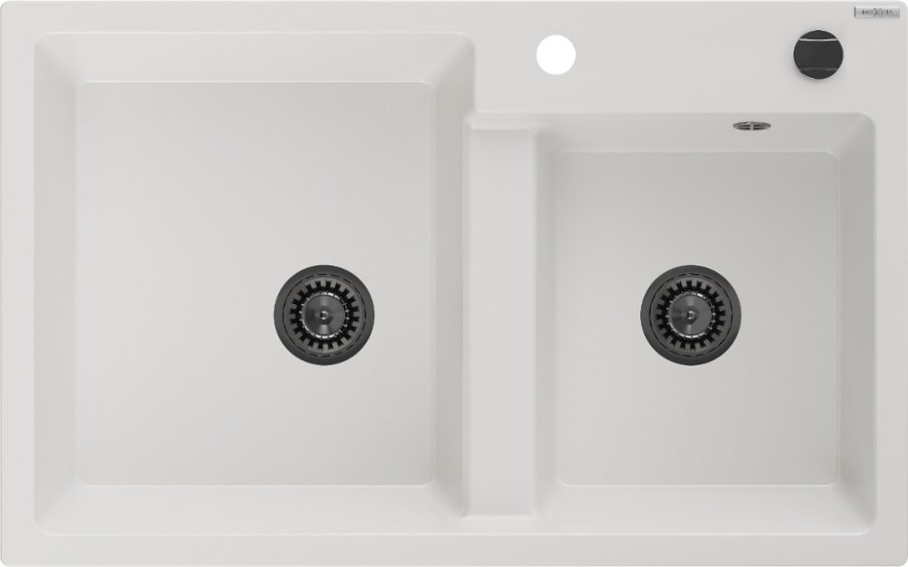MEXEN/S Tomas granitový dřez 2-bowl 800 x 500 mm, bílá, + černý sifon 6516802000-20-B