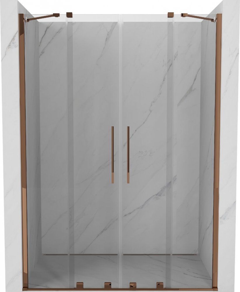 Specifikace produktu: Rozměr: 150x200 cm Instalace: Univerzální Vstup: posuvný Barva skla: Transparentní Typ skla: Tvrzené Tloušťka skla: 8 mm Profil: Hliník Povrchová úprava: růžové zlato Povlak pro snadné čištění Vyrovnání nerovností stěny Nastavení šířky Lze namontovat na sprchovou vaničku nebo dlaždice Rukojeť z nerezové oceli Sada těsnění pro odvod vody Hliníkový těsnící práh dveří EAN: 5905315215284