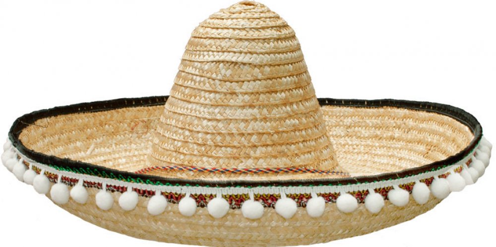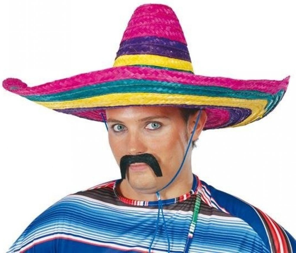 různé druhy somblerů, mexických ponč, knírů a oblečení.