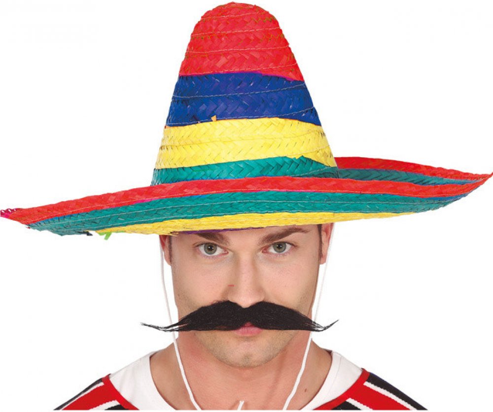 Slaměné, velké sombrero ve čtyřech živých barvách.