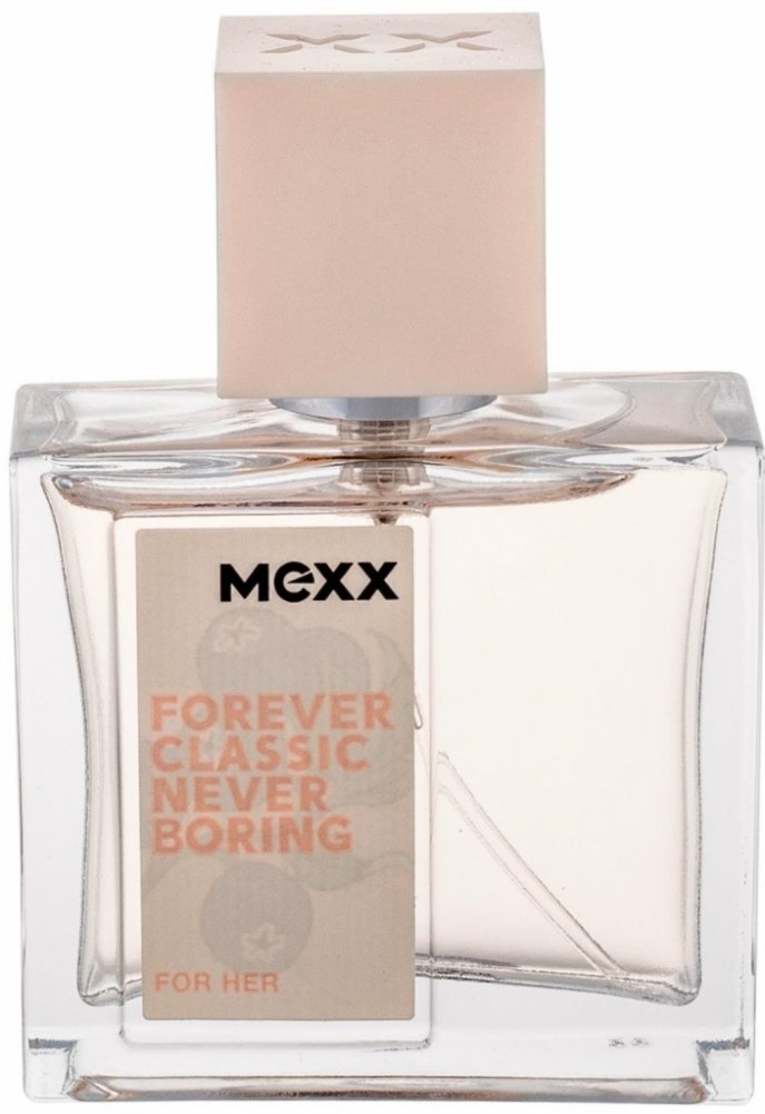 Mexx 30 ml dámské toaletní vody Forever Classic Never Boring 2018 mainstreamové hruška, černý rybíz, mandarinka, broskev lotus, list fialky santal, pralinky, pižmo Coty klasické TSA kompatibilní (≤100ml) rozprašovač 141 g standardní