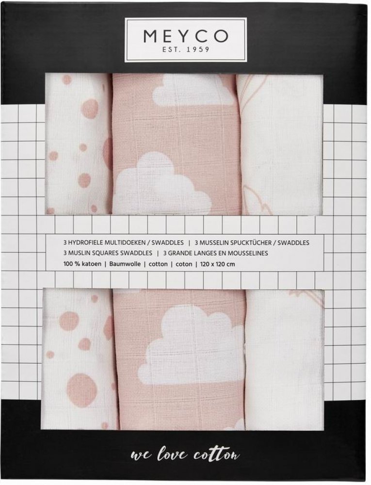 Meyco Pleny 70 x 70 cm Feathers-clouds-dots pink/white 3 ks