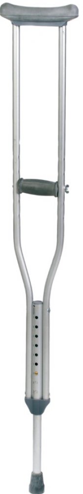 Duralové, výškově nastavitelné podpažní berle s podpažní a dlaňovou vložkou z hřejivé polyuretanové pěny.