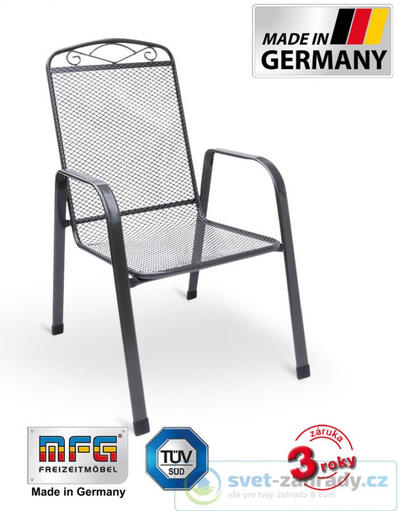 Ideální pro venkovní gastro použití v restauracích nebo terasách. Nábytek z tahokovu německé společnosti MFG (Mecklenburger Freizeitmöbel GmbH) se vyznačuje perspektivním designovým zpracováním při použití těch nejmodernějších materiálů. Vyjímečnou kvalitu potvrzují náročné zkoušky kvality GS .