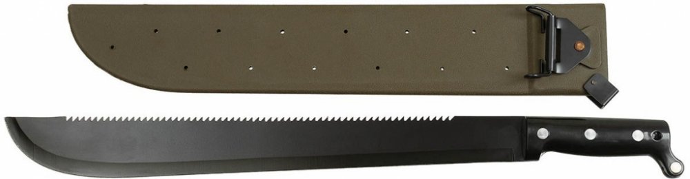 \nMačeta s pilovou částí od německé značky MFH.Mačeta je vyrobena dle vzoru mačet americké armády.Dodávána včetně plastového pouzdra.\n