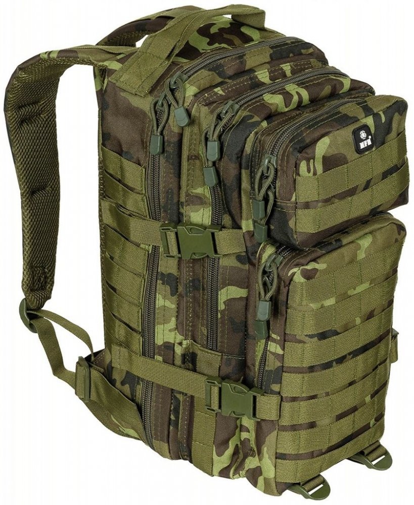 Batoh ASSALUT je odolný proti vodě s objemem 30l. Všechny prostory jsou uzavřeny robustním 2-pásmovým zipem. Ergonomicky tvarované ramenní popruhy jsou polstrované a nastavitelné. Polstrovaná záda s nastavitelným popruhem kolem pasu. Díky řadě bočních kompresních popruhů dává možnost připojit další zařízení prostřednictvím nylonových popruhů MOLLE a D-kroužků. Batoh je ideální pro vojenství, táboř...