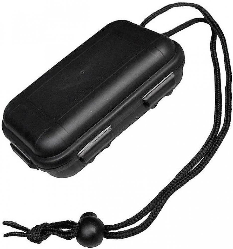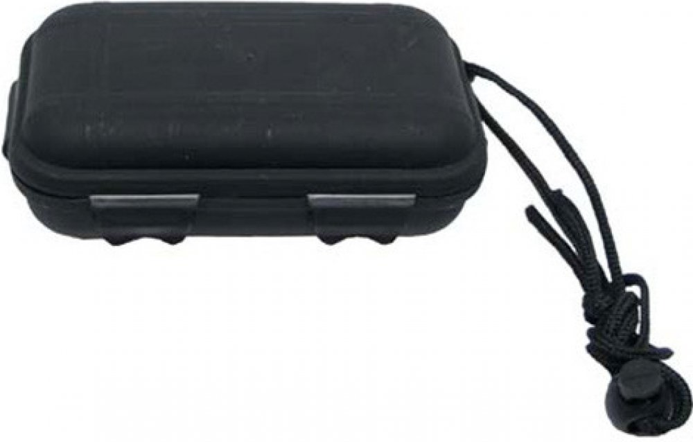 Pevná plastová krabička. !! vodě odolná !!. Zavíraní pomocí plastových 4x klipsů na víčku. Vhodná pro turistiku, vodáky. Velikost 13,5x8x3,7cm. Šňůrka pro uvázání k opasku, batohu a pod. Do krabičky si můžete uložit mobil, peníze a další drobné osobní věci, které by měly zůstat v suchu. Stav nový, černá barva.