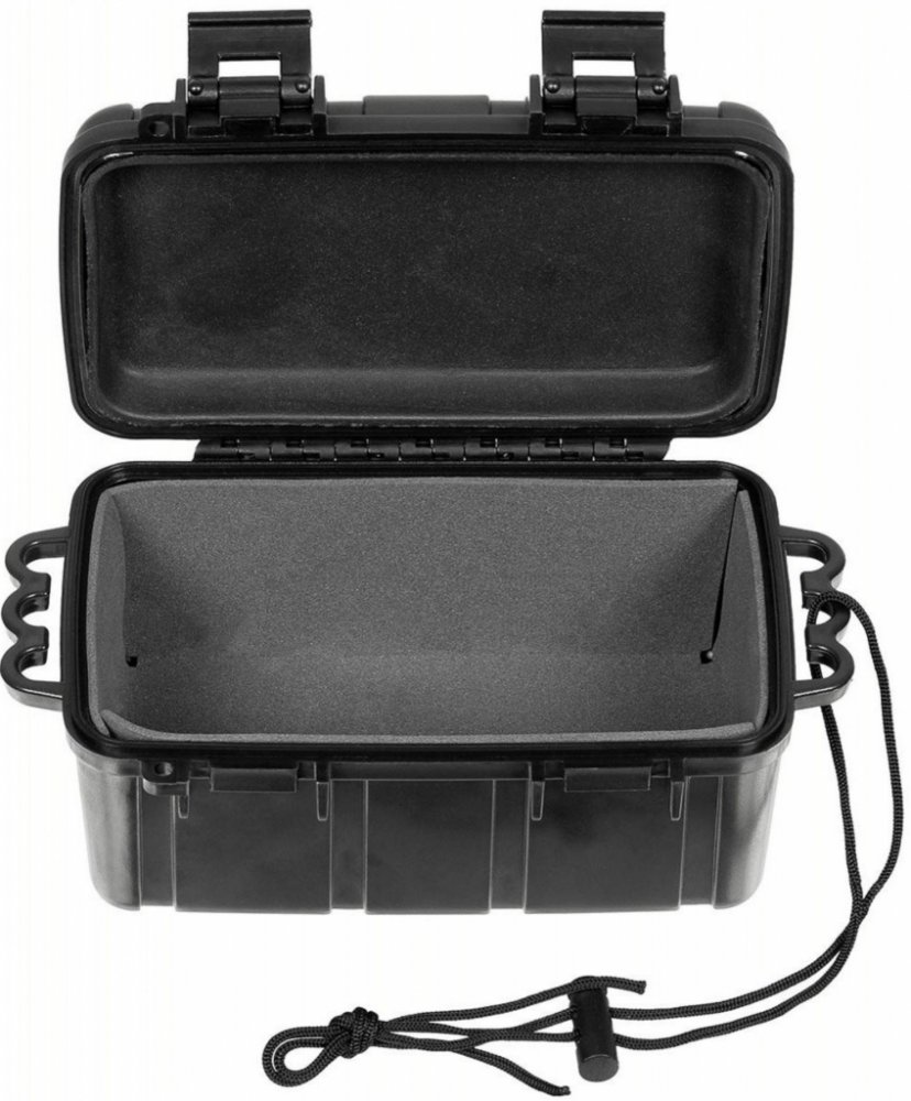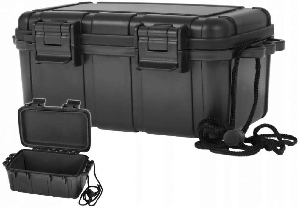 Hliníkový box vhodný nejen pro trempy. Box je vodotěsný, hliníkový, přímo ideální pro ochranu cenností jako například fotoaparáty, kamery, mobilní telefony, apod. Box je opatřen gumovým těsněním a vnitřním polstrováním. Velikost: 13,3 x 9,2 x 3,4 cm