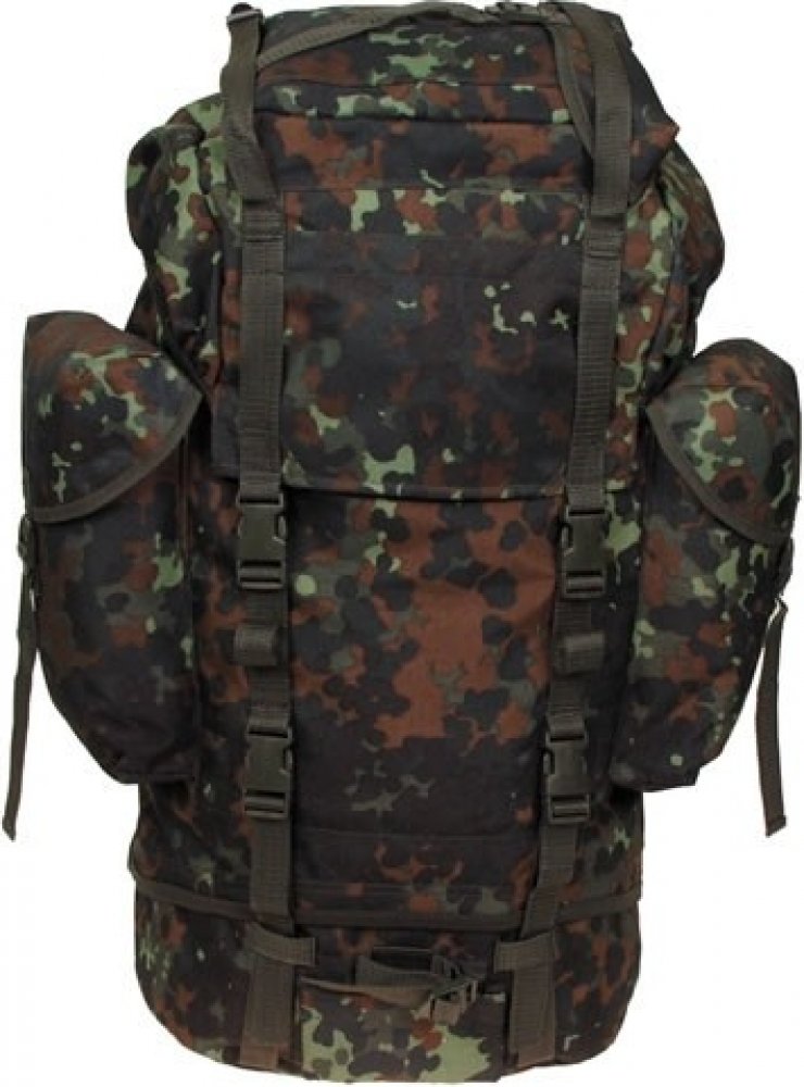 Replika bojového batohu BW, dvoukomorové provedení, polstrované ramenní popruhy, dvě vnitřní oddělení, dvě velké postranní kapsy.