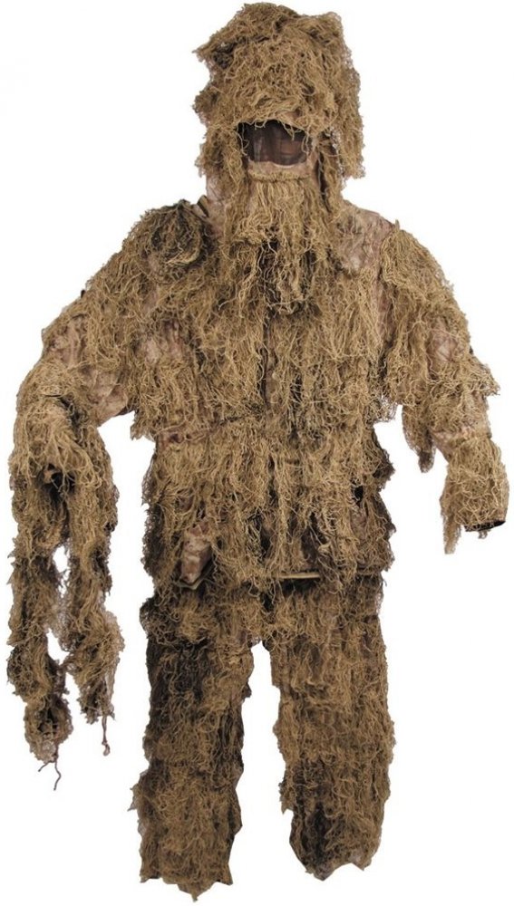 Čtyřdílná sada pro 3D maskování ve světlích podmínkách jako třeba rákosí. Velmi dobře maskuje díky různě zbarvených třásní. Kalhoty, blůza, klobouk a maskování na zbraň . Kalhoty mají stahování v pase tkalounem.