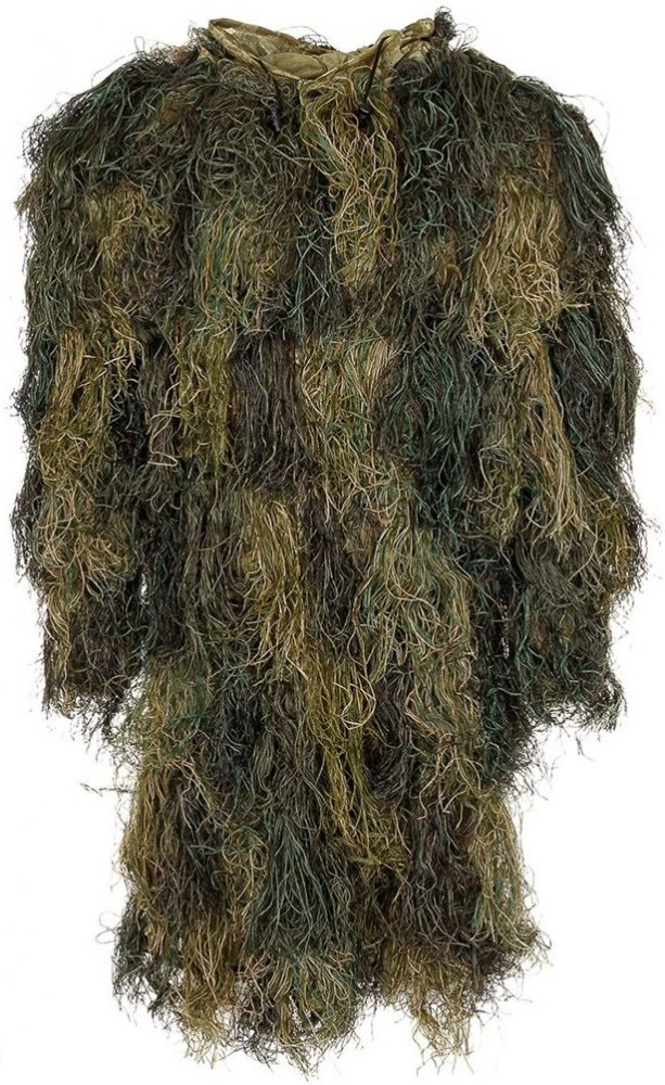 Maskovací převlekový kabát, výborný pro jednoduché maskování jednotlivce při airsoftových hrách, lovu nebo focení v přírodě. Stahovací kapuce, pružný pás a manžety, 2 průchody, rozepíná se patentními knoflíky na přední straně. Transportní taška. Materiál :100% polyester s úpravou zpomalující hoření.