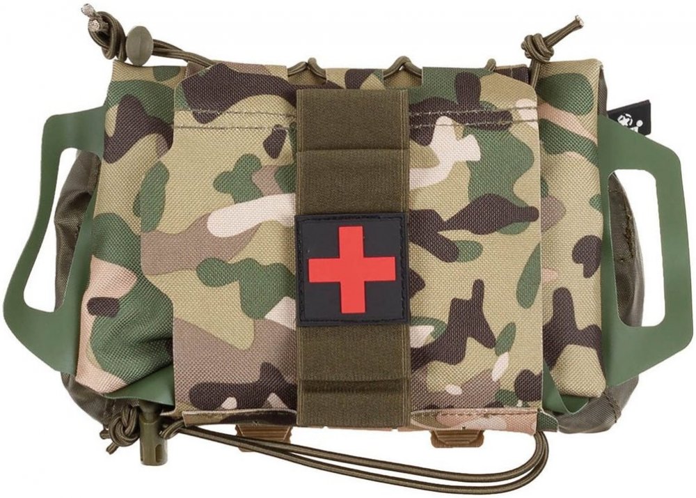 Pouzdro pro vybavení první pomoci od německé značky MFH.Vlastnosti: 2dílné (sáček a nosná role) rychlý přístup vytažením sáčku vpředu váleček s elastickými poutky šňůry a nášivka na suchý zip 2 MOLLE/PALS kompatibilní plastové klipy prostupy na opasek (cca 5 cm) pro vertikální nebo horizontální upevnění vnitřní taška se 2 velkými zasouvacími přihrádkami, 2 elastickými poutky, zapínáním na druky a 2 malými kapsami s bočním otevíráním (např. na jednorázové rukavice), zvenčí se suchým zipem (cca 10 x 5 cm), 2 elastické zajišťovací ...