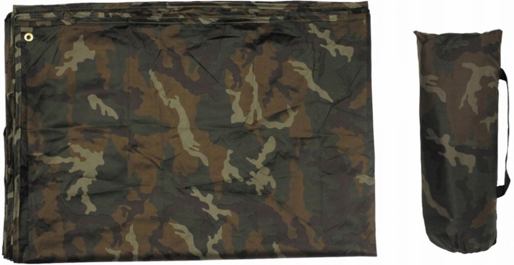 Víceúčelová plachta/celta, která může sloužit jako dočasný přístřešek, stačí kovovým oky provléknout provaz a plachtu vypnout třeba mezi stromy. Nebo pod ní můžete schovat věci, které nechcete, aby v deštivém počasí promokly.