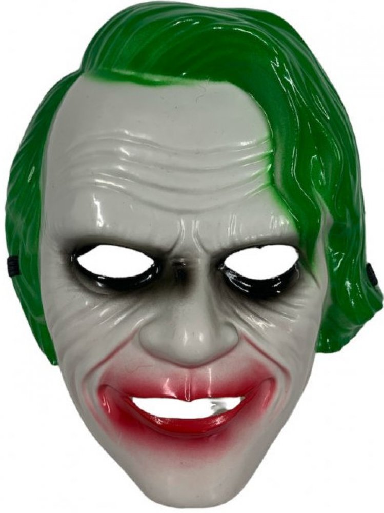 Barevná plastová maska je vybavena gumičkou, otvory pro oči, nos a pusu.