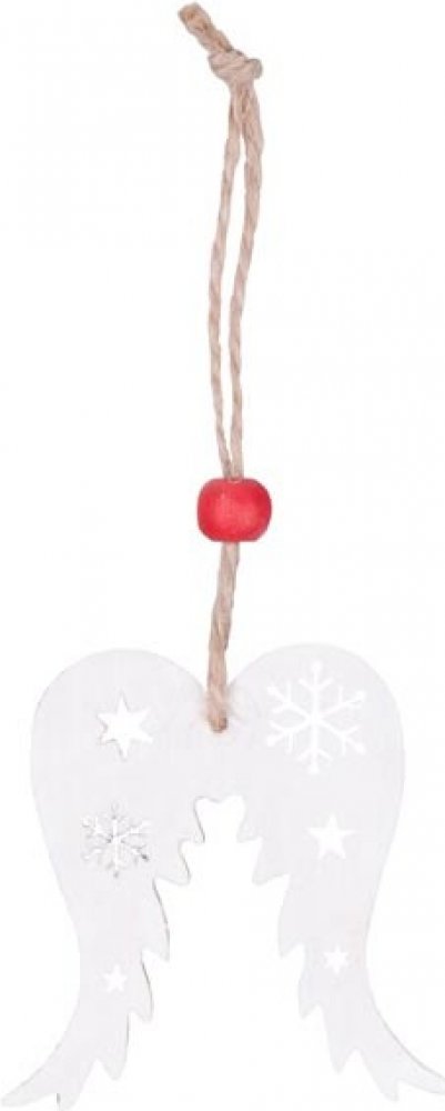 Dřevěná, bílá andělská křídla na zavěšení. Krásný závěs andělská křídla je opatřený provázkem s korálkem na zavěšení. Můžete ho zavěsit na stromeček, do okna nebo na dveře. Zkrášlí tak váš interiér, a umocní vánoční atmosféru.