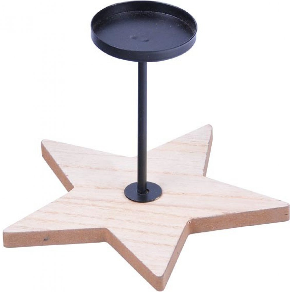 MFP 8886429 Svícen hvězda dřevo + kov 15cm