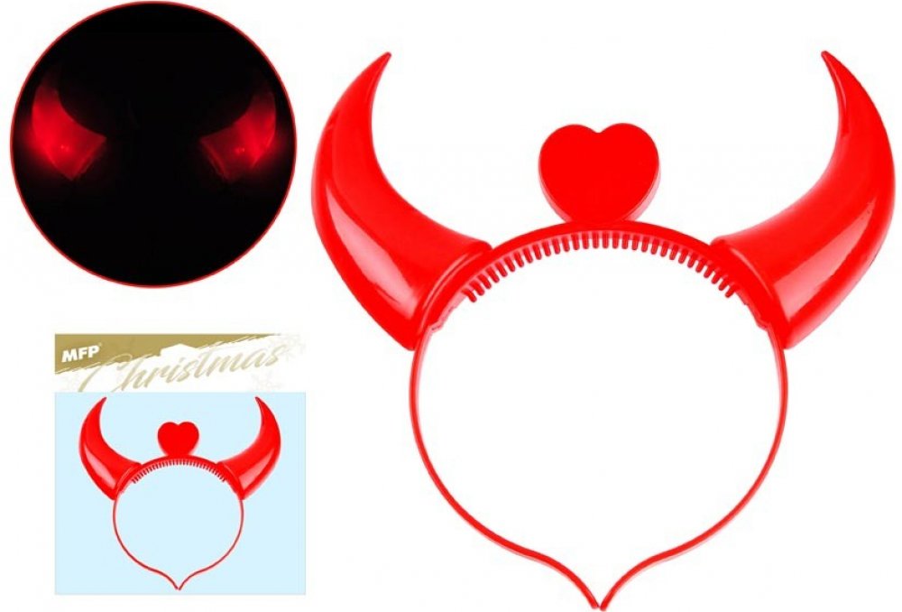 Svítící čertovské rohy - Vánoce bez čerta, jakoby nebyly. Pořiďte si tyto krásné čertovské rohy, které budou skvělým doplňkem pro Váš ďábelský kostým Rohy mají spínač s možností zapnout a vypnout. Tyto rohy napájí dvě knoflíkové baterie LR41. Baterie se dají vyměnit a jsou součástí balení. Uvedená cena je za 1 ks. Dodáváme v sáčku se závěsem. Rozměr: 185mm x 197mm x 27mm (Š x V x H)