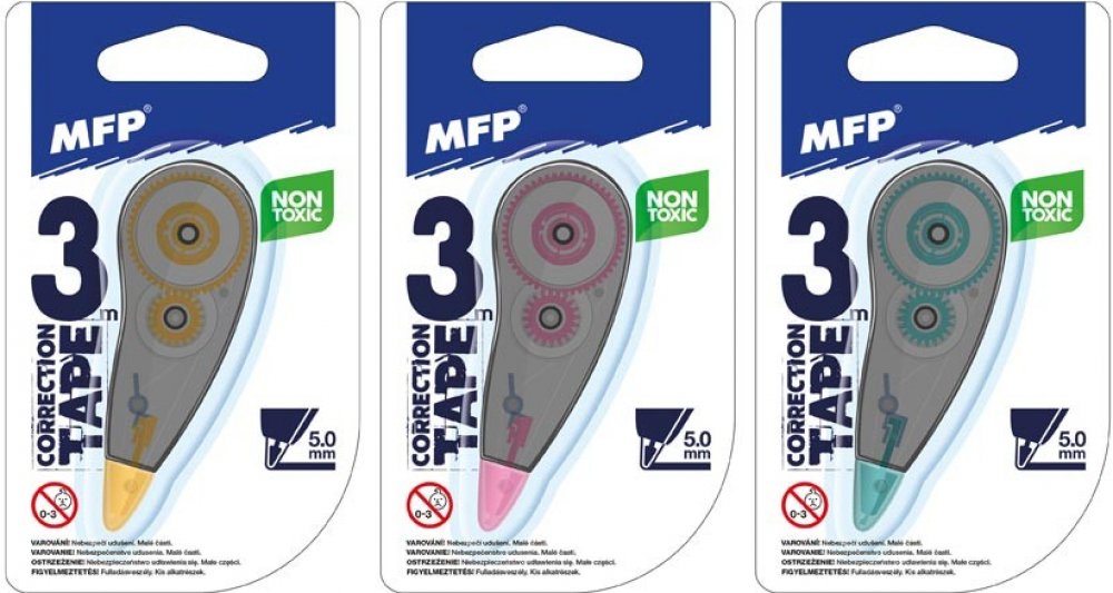 Korekční páska - Chcete skrýt na papíře něco, co jste napsat nechtěli? Stačí Vám na to korekční páska ! - netoxická - rychlá a čistá aplikace - bezprostřední možnost přepsání - šetrná k životnímu prostředí - bez zápachu Návin pásky je 3 m. NÁVOD: 1. Umístěte hrot na místo, které chcete opravit a tahem ho zabělte 2. Oprava bude efektivnější, pokud bude dokument podložen papírem nebo hladkou podložk...