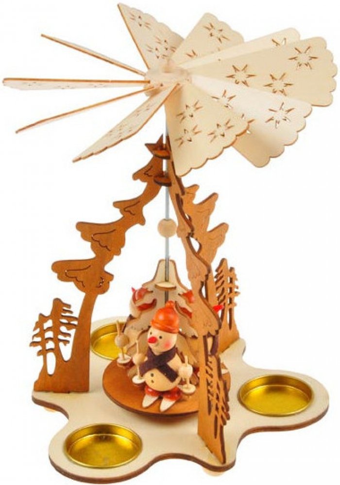Vánoční dřevěný svícen točící s vyřezanými vánočními motivy - Svícen obsahuje 3 kalíšky na čajovou svíčku. Stačí ji vložit, zapálit a užívat si vánoční čas.